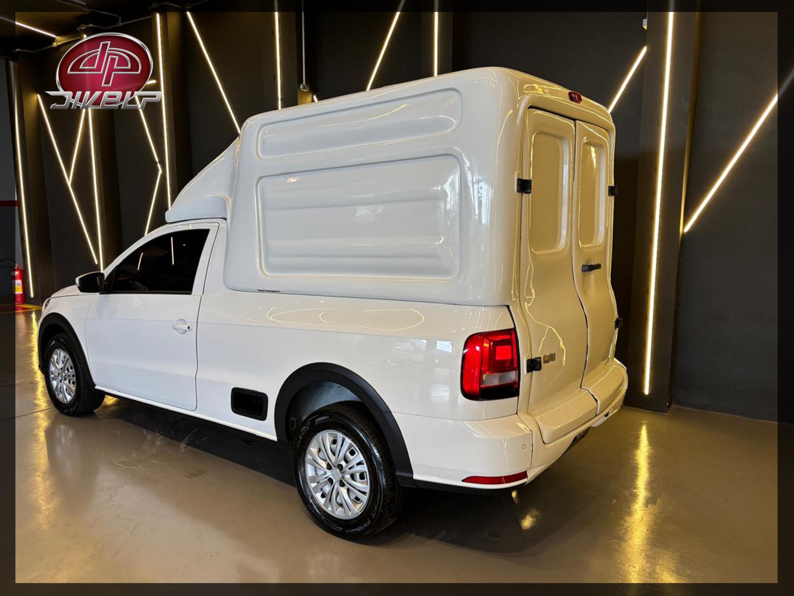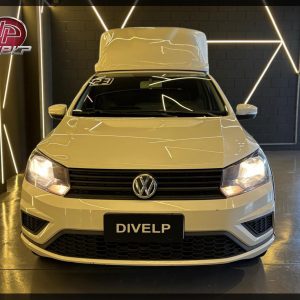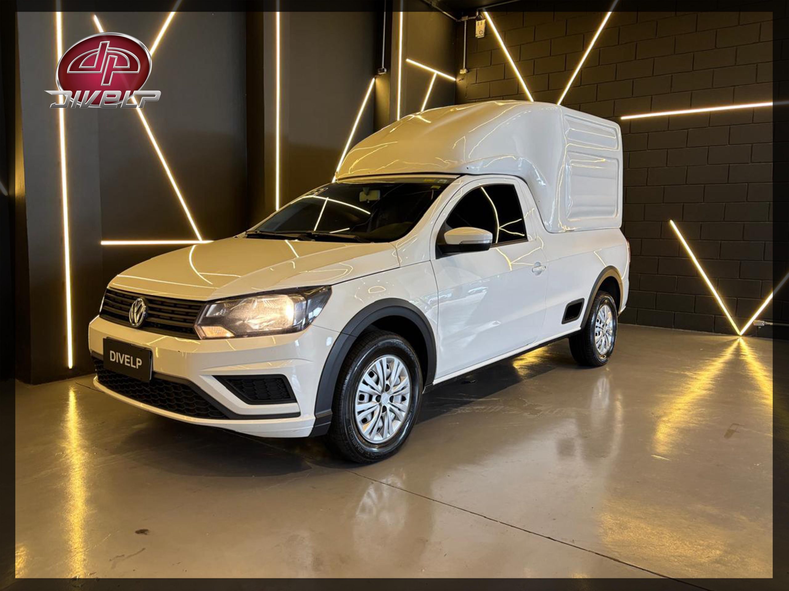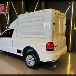 A Vw Saveiro Cabine Simples ano 2023 já vem com baú em fibra de vidro para transporte de carga seca. Confira detalhes:
